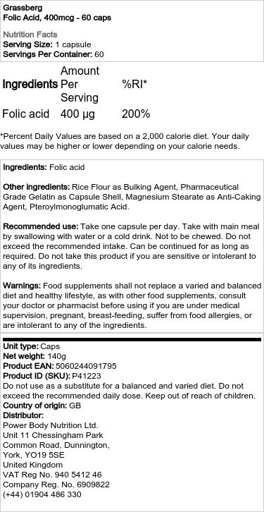 Grassberg’s Folinsyre er fremstillet uden brug af GMO-ingredienser og passer ind i en vegansk livsstil. Husk altid på ikke at bruge kosttilskud som erstatning for en varieret kost. For optimal effekt bør dette supplement anvendes som del af et balanceret kost- og livsstilsregime.